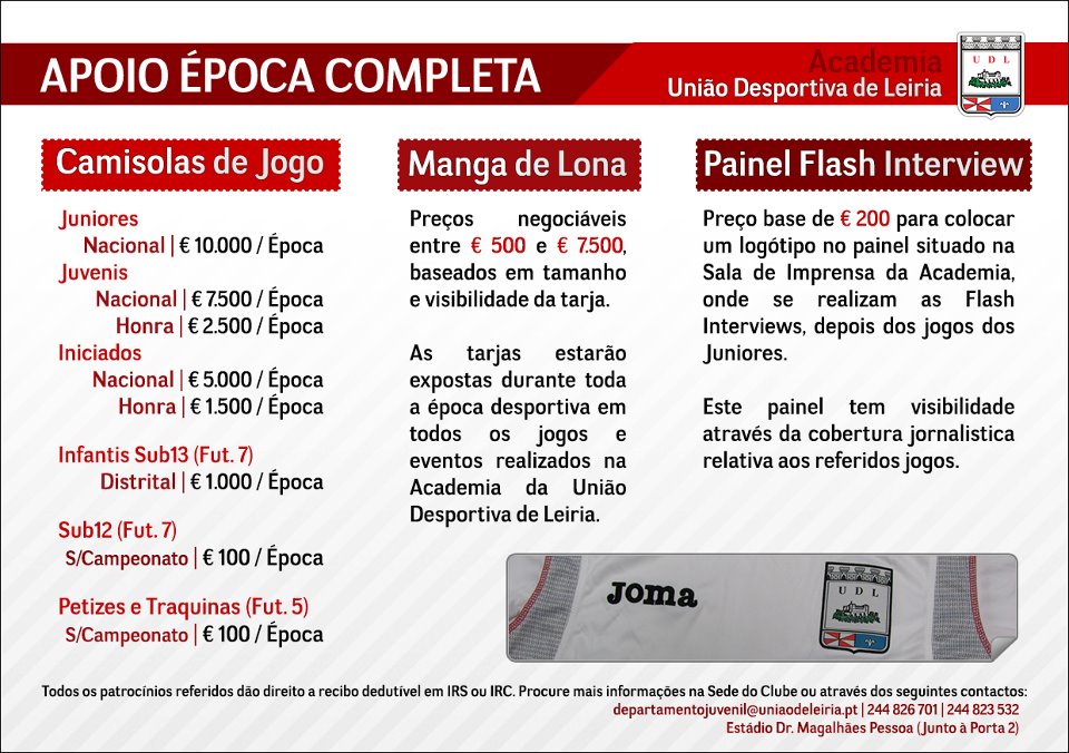 - Estes patrocínios destinam-se ao Futebol de Formação - CLUBE.